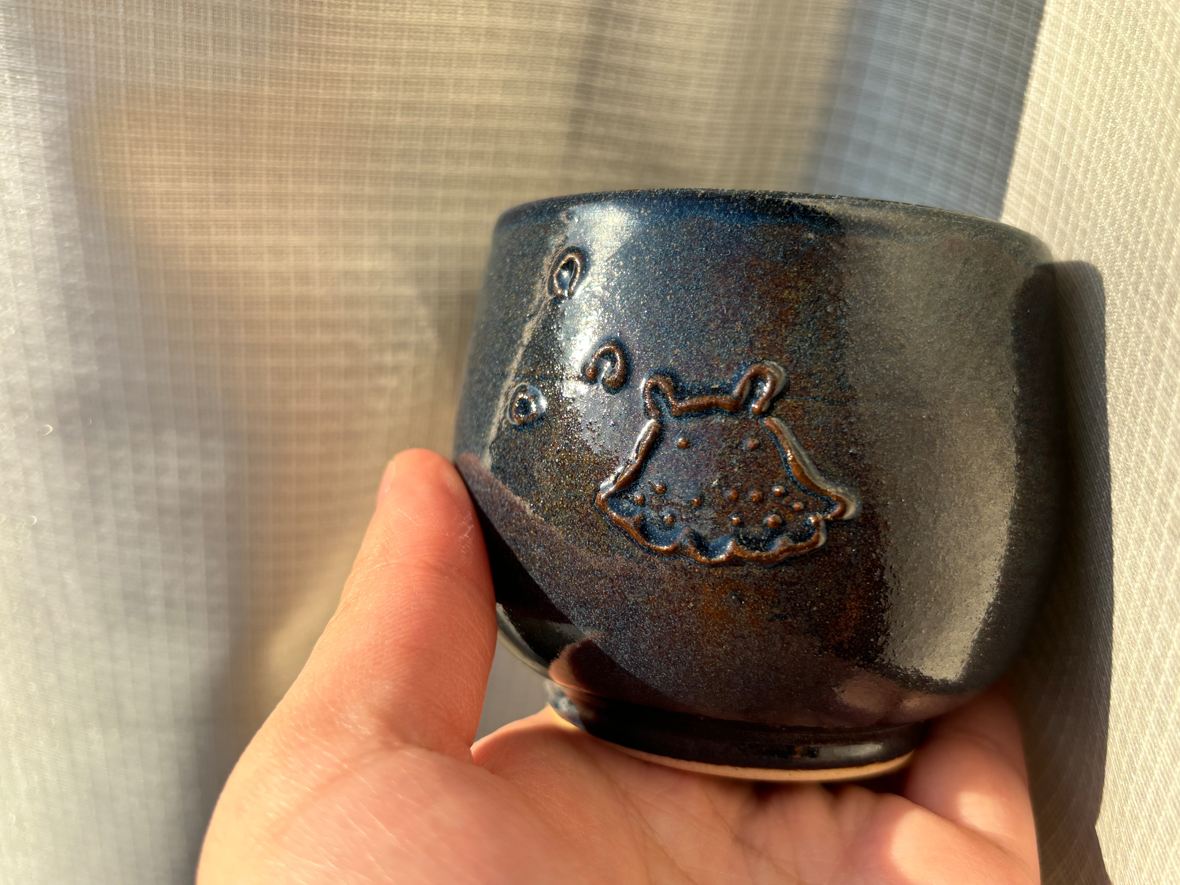 深海の不思議な生き物、メンダコをデザインした青い湯呑みです。繊細なイッチン技術を用いて、一つ一つ手作業で仕上げられたこの湯呑みは、光の加減と見る角度で表情が変化し、ただの食器ではなく、心を和ませるアートとして楽しんでいただけます。シンプルでありながら個性的なデザインが、特別なひとときに華を添えます。